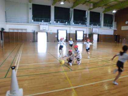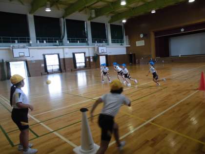 どこに、どのような球を打つとよいか、どこで守るとよいか、チームで作戦を考えながらゲームに取り組んでいます。