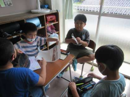 昼休みに、新聞係のメンバーが集まって会議をしていました。自分たちで動く姿がすてきです。