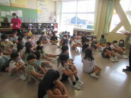 今日は、学習発表会の説明をしました。2年教室に集まるために教室から机を廊下に運び出す子供たち。1年生が来るからと、自分たちで掃除をはじめ、ピカピカにしていました。そういう思いやる心がすてきですね。