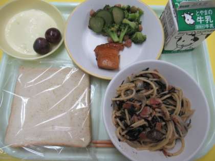 15日(木)今日の献立 公開日 2022/09/15 更新日 2022/09/15 給食室 ・食パン ・牛乳 ・照焼きチキン ・ビーンズサラダ ・巨峰 ・ベーコンとひじきの和風スパゲッティ ※11時55分、検食終了。異常ありません。 今日も美味しく調理されています。