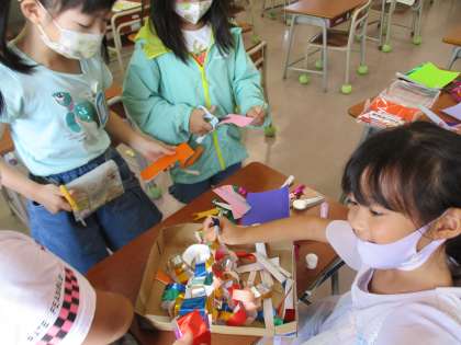 スキー山へ虫とりに行ったり、係活動をしたり、友達と楽しそうに遊んでいます。