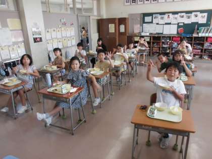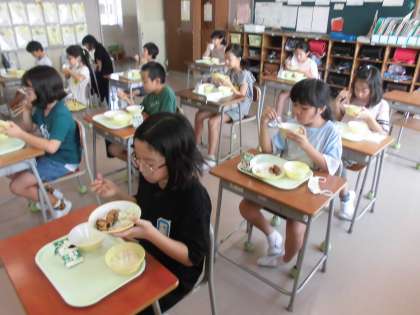 体育の後で、お腹ぺこぺこです。「食べキリン」目指して、今日もおいしくいただいています。