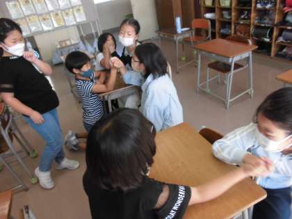腕相撲をしているようです。楽しそうです。