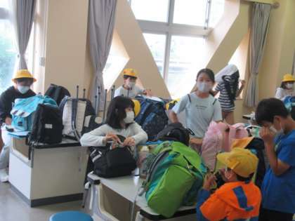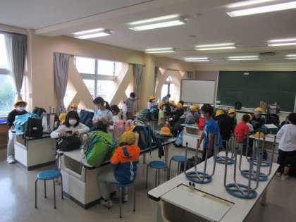 いよいよ待ちに待った宿泊学習です。元気に登校し、理科室に集合です。