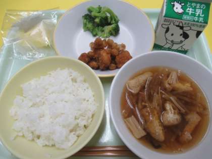 27日(火)今日の献立 公開日 2022/09/27 更新日 2022/09/27 給食室 ・ごはん ・牛乳 ・魚とひよこ豆の甘からめ ・ゆでブロッコリー ・沢煮椀 ・冷凍りんご ※11時45分、検食終了。異常ありません。 今日も美味しく出来上がっています。
