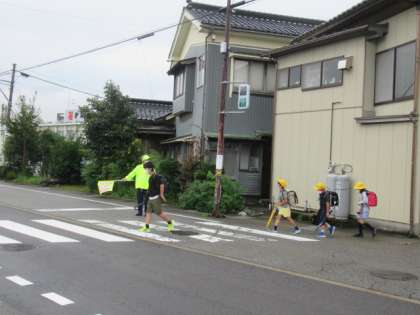 子供たちの登校時、雨はやんでいます・・・ 早朝より、見守り、ありがとうございます!