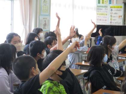 今日、宿泊学習の事前学習がありました。1日目に、暴れ常願寺川について学習するので、昔どんな災害があったのか教えてもらいました。宿泊学習で体験するときは、楽しく安全に学習できるようにしたいです。