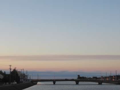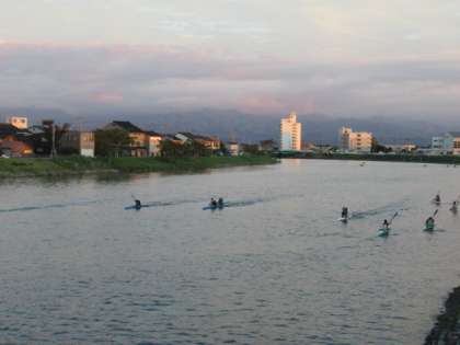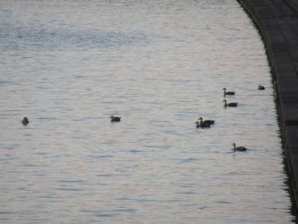 夕焼け、ボートの練習、そして、カモの家族?・・・