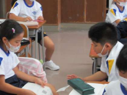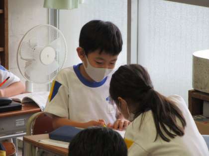 今日は、正方形について学習しました。他の四角形との違いを友達と相談しながら考えていました。