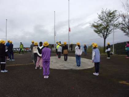 朝の集いのために、立山広場に集合です。空気が澄んでいます。ちょっと寒いです。