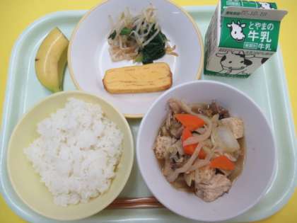 11日(火)今日の献立 公開日 2022/10/11 更新日 2022/10/11 給食室 ・ごはん ・牛乳 ・厚焼き卵 ・もやしのおひたし ・すきやき ・バナナ ※11時50分、検食終了。異常ありません。 今日も美味しく調理されています。