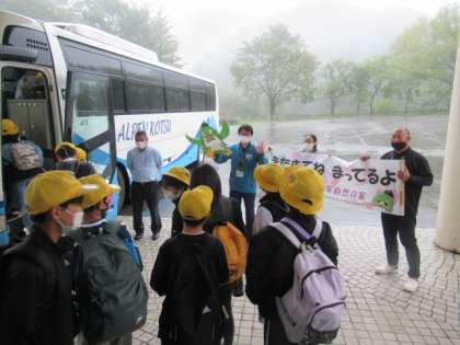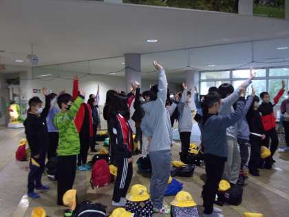 いったん自然の家に帰り、昼食を食べて退所式です。お世話になった先生方にもあいさつをして帰校します。