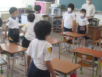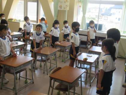 1年生は、朝の会が始まっています・・・