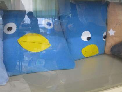 個性豊かなクッション達です。同じ動物・・・のはずなのですが、表情豊かですね。