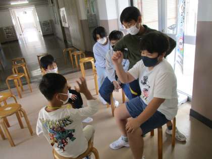13日、就学時健康診断が行われました。今回の行事で、未就学児たちを校内の検診会場へ案内したり、検診を助けてあげたりするホスト役を5年生が務めました。