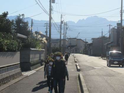 20日(木)登校の様子 公開日 2022/10/20 更新日 2022/10/20 4年生 剱岳を真正面に見ながら登校してくる子供たち・・・ また、剱岳を背に登校してくる子供たち・・・ 剱岳、立山連邦に見守られていますね。