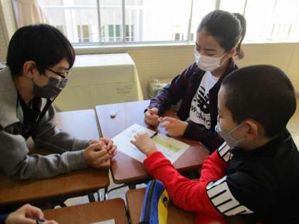 みんなに分かるように、説明しながら進めます。最後は、グループのみんなで先生に説明です。すっきり解明できたかな?