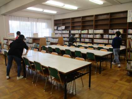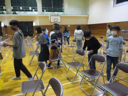 椅子を拭いたり、並べたり。来賓の方の控え室を準備したり、案内の札を貼ったり。てきぱきとした動きで、短い時間で完了しました。明日の本番も頑張りましょう!