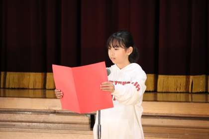 5年生「感謝の手紙」 公開日 2022/10/22 更新日 2022/10/22 5年生 各学年の幕間、地域の方々に向けて感謝の手紙を読みました。5年生代表児童は、「浦安の舞」に参加した時の経験をもとに地域の方々へ感謝を伝えました。
