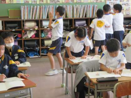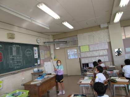 教室の中からかけ算を探しました。かけ算を使うとすぐに計算ができるね。