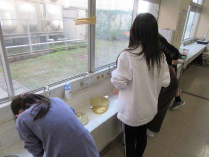 調理実習に向けて、有志で準備をしました。意欲的に働く人たちです。すばらしい!