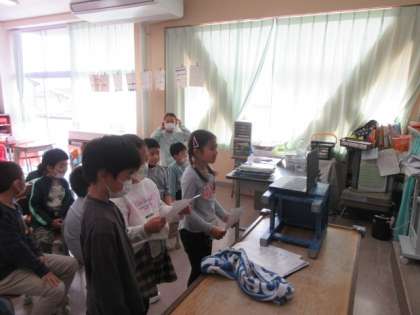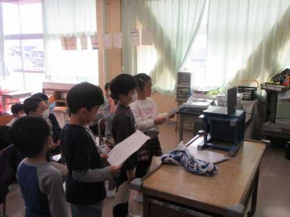今日は、校外学習にむけて、クラスで決めた「遊びのルール」について他校に説明しました。子供たちは、笑顔いっぱいで紹介することができました。