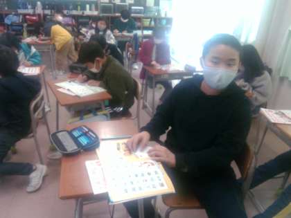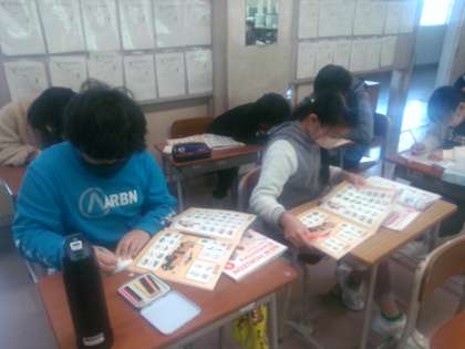 明日の外国語科学習(授業)に向けて(準備として)、カードに建物のアルファベットと絵を書いています。明日は、教室が「Town(タウン)」になります。楽しみです!