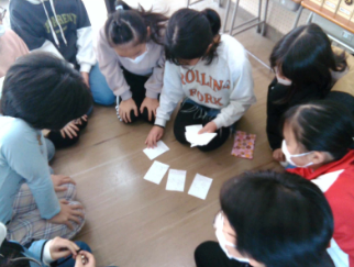 休み時間に、「ウインクキラー」というゲームをやっています。紙にボディーガードやウインクキラー、共犯者などと役職を書いて、それを引いてゲームをします。市民などもいます。楽しいのでぜひやってみてください!