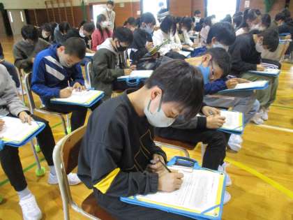 今日、私たちは、「がん(癌)」についての話を聞きました。実際にがん(癌)になったことがある方から話を聞くと、がん(癌)と診断されたときは、ショックだったそうです。がん予防について知ることができてよかったです。
