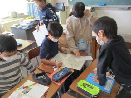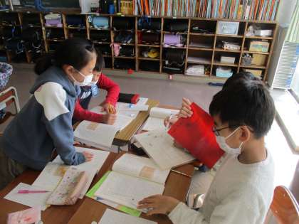 説明文の要点を押さえて要約にチャレンジしています。子供たちは目指した字数にまとめることができると、「ようやく、できた」と喜んでいました。