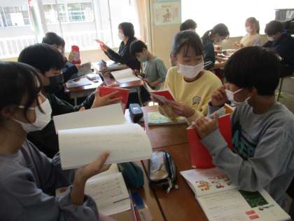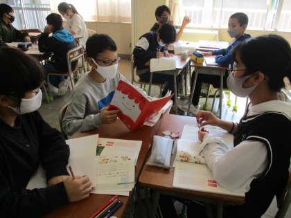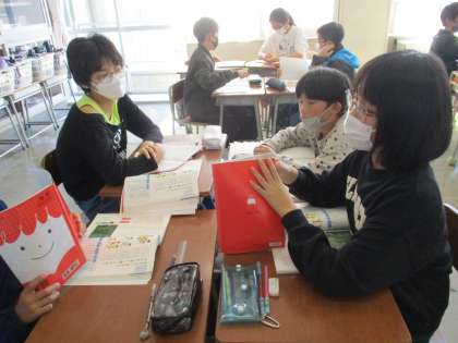 「みんなが楽しく過ごすために」の学習で、三校交流会のゲームを何にするかについて話し合っています。