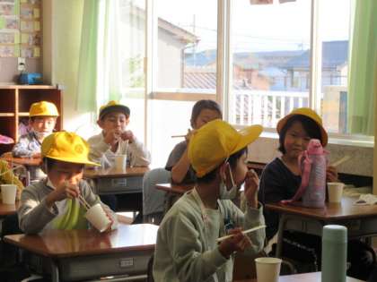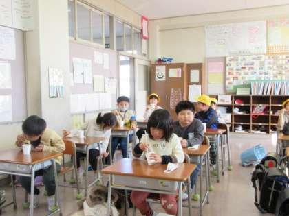 今日は、2年生の畑で収穫したサツマイモをみんなで食べました。たくさん収穫できたので少しお家にもって帰ります。楽しみにしていて下さい。