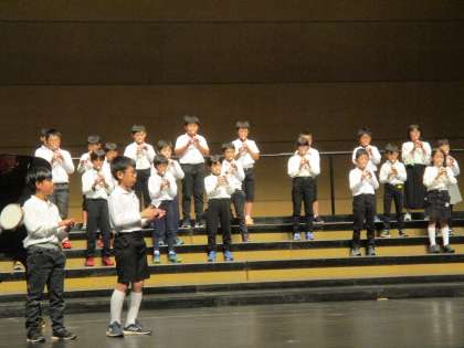 3・4年生 区域音楽会〜オーバードホールにて〜 公開日 2022/10/31 更新日 2022/10/31 4年生 区域音楽会で「パフ」「青空に深呼吸」を合唱・合奏してきました。子供たちは、今までの練習の成果を出し切って、素敵なハーモニーを響かせました。