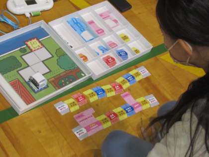 特別なロボットを使って、プログラミングの仕方について学びました。試行錯誤を繰り返しながら、ロボットを適切に動かそうと熱心に活動していました。