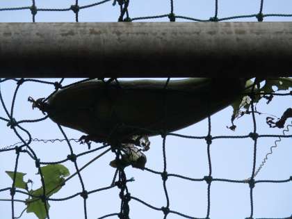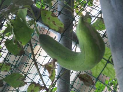 子供たちが3階の窓からヘチマを発見しました。今年は不作でしたが、なったものは大きく成長しています。