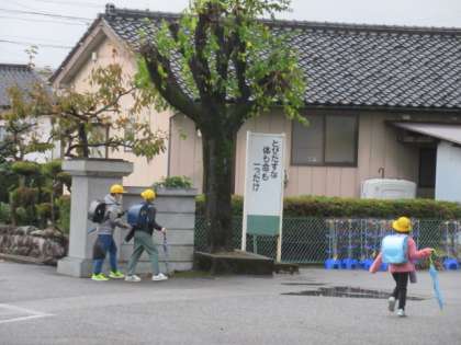 登校時、雨は止んでいます・・・