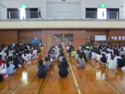 今日は、3校交流校外学習に行ってきました。あいにくの天気でしたが、水橋中部小学校の4年生と一緒に「的当て」をして交流しました。お互いに緊張しながらでしたが、楽しんでいました。