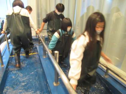 四季防災館では、様々な災害に関連した体験活動を行いました。消火器を使ったり、流水の中を歩いてみたりしました。実際に起きた地震の揺れを体験することもできました。