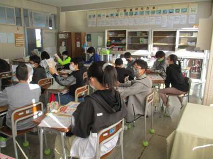 今の単元では、朝食・昼食・夕食でたべたものや、使われている食材がどこからきているものなのかを英語で話したり、質問したりしています。