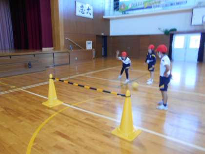 今日はレベルアップ。「1・2・3」で返すことに加え、バーの下を通します。