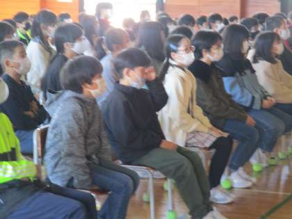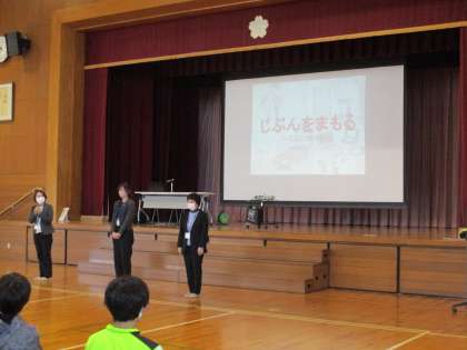 今日は、防犯教室がありました。不審者が出やすい場所や、万が一遭遇してしまったときの対応について学びました。もしも・・・のときのために、しっかり心にとてめおきましょう。