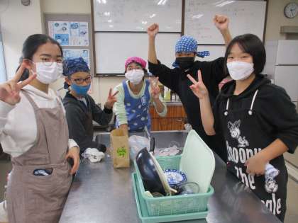 21日の月曜日の調理実習は、大成功だったようです。職員室にも持ってきてくれて、私たち職員みんなで、おいしくいただきました。盛りだくさんな内容だったようですが、協力して手際よく調理し、時間内にしっかりと片付けまでできましたね。ぜひ、家でも作って、家族に食べてもらってくださいね。