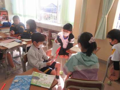 文章の書き方のよさを見付け、友達同士で話し合いました。