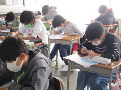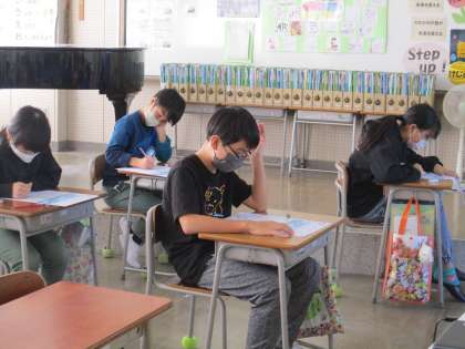 テストの様子です。集中しています。11月も終わりに近づき、2学期としても「まとめの時期」に入っています。自分で計画を立てて復習し、2学期の学習をしっかり身につけていきましょう。