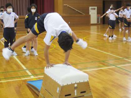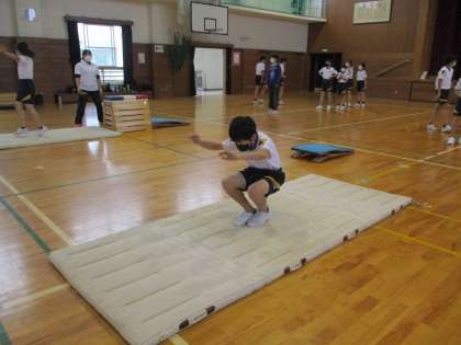 今日、跳び箱教室がありました。指導者の方から、開脚跳びや前転の仕方を教わりました。今度、跳ぶ機会があったら、教えてもらったことを生かして跳びたいです。