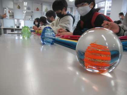 僕たち6年生は、ガラス工房に行きました。自分でデザインや色を考えて作りました。自分の思いを込めて作ることができたので、よかったと思いました。とても楽しかったです。