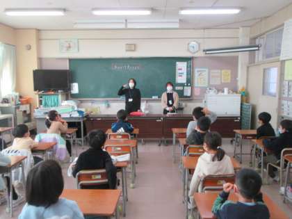 今日は、市立図書館・水橋分館の方が教室に来られて、絵本の読み聞かせをしてくださいました。子供たちは、興味津々で話を聞いていました。