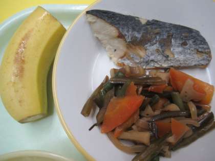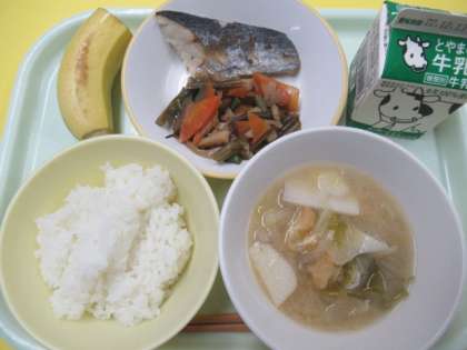 6日(火)今日の献立 公開日 2022/12/06 更新日 2022/12/06 給食室 ・ごはん ・牛乳 ・鰆の塩焼き ・茎わかめのきんぴら ・具だくさん汁 ・バナナ ※11時45分、検食終了。異常ありません。 季節柄、温かい献立は、大変おいしいです。