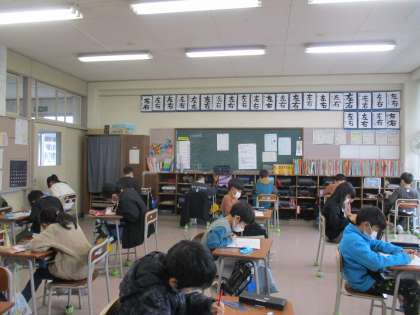 本日は、算数の「学習のたしかめ」です。今までの勉強の成果を出し切ろうと、がんばっています。