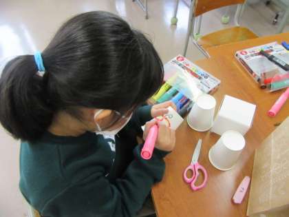 今日は、自分たちでもってきた材料を使って「おもちゃ」を作りました。パワーアップさせて、もっと楽しい「おもちゃ」にしていこう。